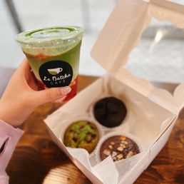 La Matcha is a hidden gem! I did not find out about them until this year but since then, I've become a regular for their drinks and sandwiches. First off, the service is great. The ladies that run the place are very accommodating and friendly. Sometimes, there's a big rush around lunch so they will tell you an approximate time for when your order is ready. Second, I think any drink that they make is great. I usually get a strawberry banana smoothie (they even do less sugar) or an iced mocha but their passion fruit mixed tea is also delicious. Lastly, their sandwiches are well balanced and hit the spot. Specifically, I like to get the Ultimate Club with extra meat. If you have enough room, I highly recommend the mochi muffins for dessert There isn't a lot of seating but it is what you'd expect for a cafe. If you are craving a nice sandwich or a caffeine boost, give La Matcha a shot!