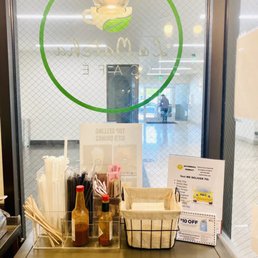I work upstairs and this cafe has everything you could possibly want and need. Breakfast foods, coffee, boba, sandwiches, and desserts. Service is always quick and the ladies who work there are extremely nice. The mochi muffins are AMAZING. The chicken pesto is my favorite. You can't go wrong with any of the smoothies, boba, or coffee. Boba is a bit on the sweet side so I always ask for less sugar and they're able to accommodate me. So happy to have them in the building!